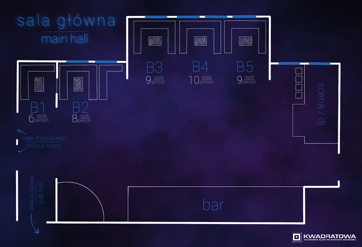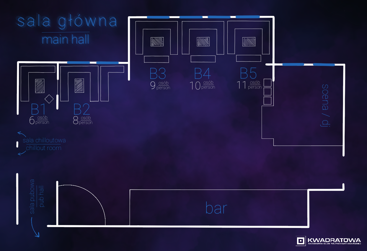 Tables can be booked on AK PG Kwadratowa’s Facebook page AK PG Kwadratowa na Facebooku (click) by sending a private message!