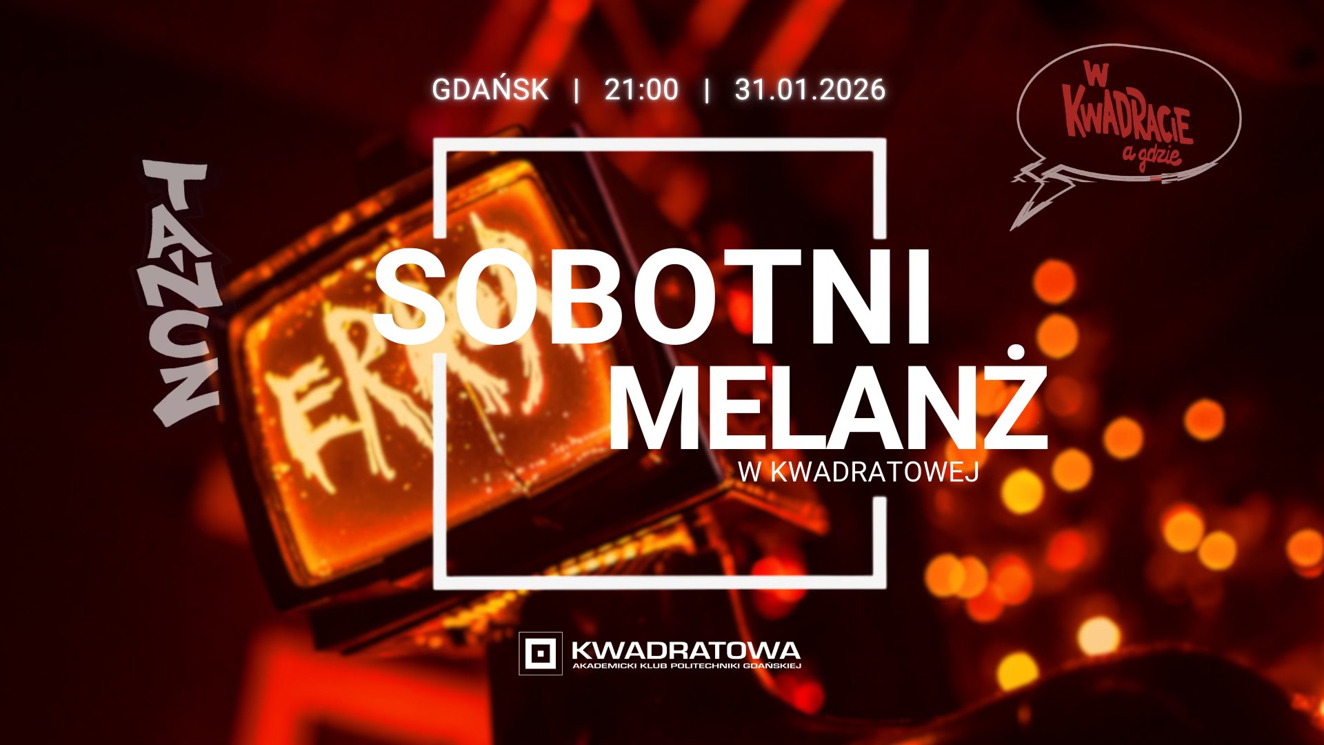 Po całym tygodniu zapraszamy na sobotni melanż do Kwadratowej. Setki gości kończących weekend w jednym z największych klubów w Trójmieście. Na górnej sali usłyszycie mieszankę gatunków muzycznych z kilku ostatnich dekad, która pozwoli dobrze bawić się na parkiecie najbardziej wymagającym klubowiczom.